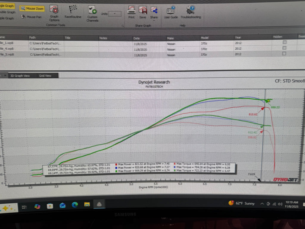 In our testing, this turbo kit has made in excess of over 800whp on an Infiniti G37 with the appropriate supporting modifications and our ECUTEK custom tune at only 15psi of boost. With twin 62mm turbos, this kit is capable of in excess of 900whp+ on fully built engines and proper tuning.